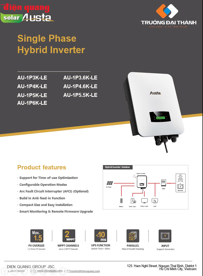 Công suất đầu ra: 3kW – Đáp ứng hiệu quả nhu cầu sử dụng điện của gia đình hoặc văn phòng quy mô vừa