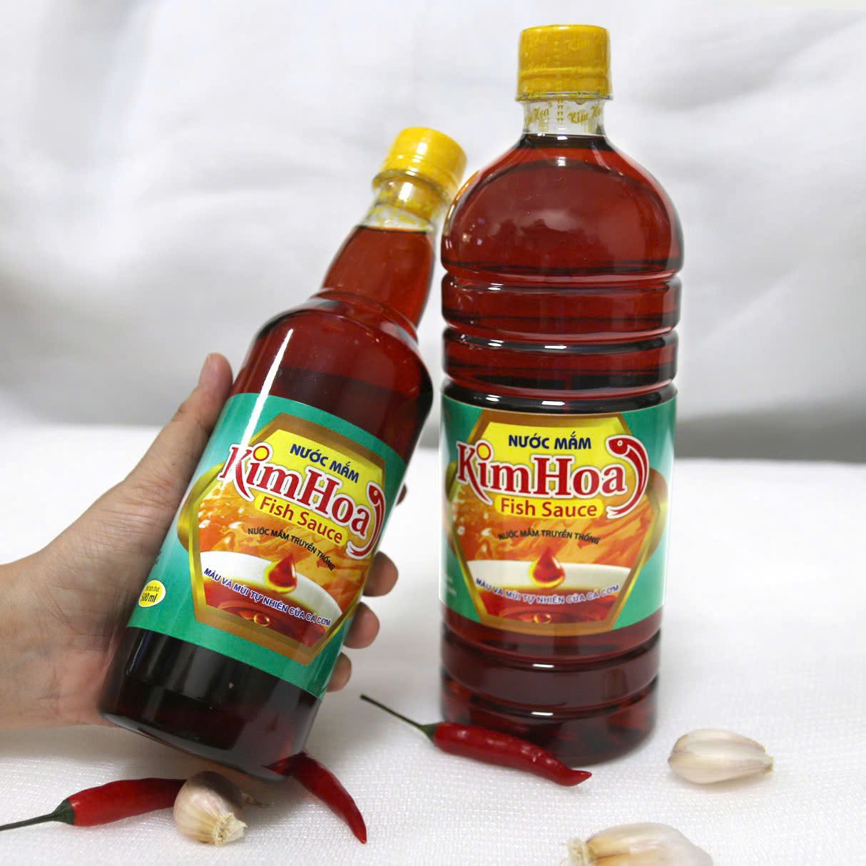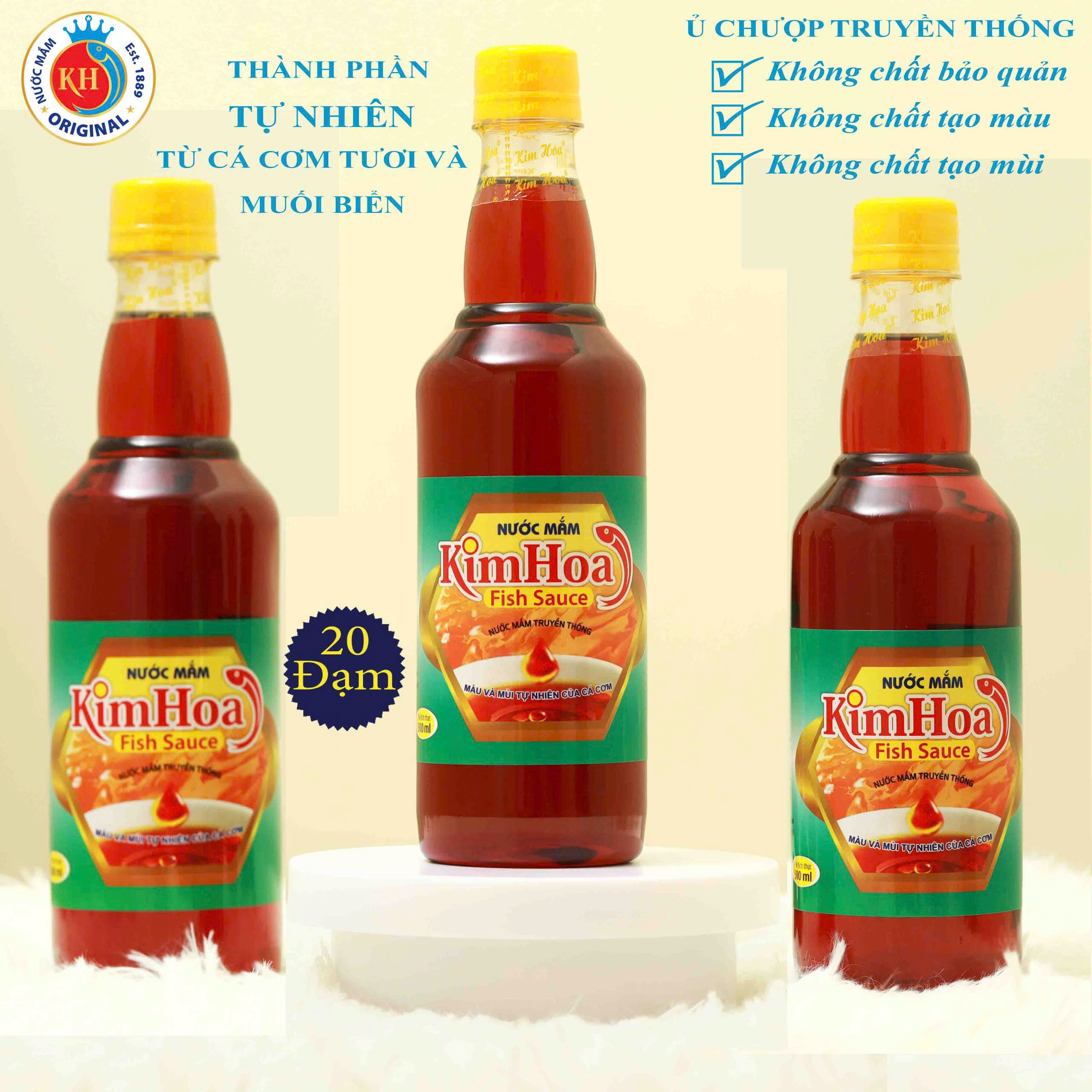 Với tiêu chí giữ trọn hương vị truyền thống Nước mắm Kim Hoa không sử dụng chất điều vị chất bảo quản nên cá sẽ được thủy phân hoàn toàn, khi đó nước mắm được kéo rút ra sẽ có màu cánh gián đặc trưng và các phụ gia khác đạt tiêu chuẩn vệ sinh an toàn thực phẩm HACCP.