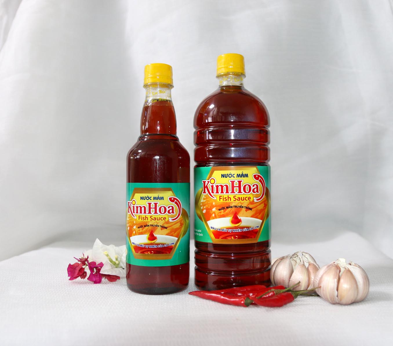 Nước mắm Kim Hoa là nước mắm nguyên chất được làm từ nguồn nguyên liệu các cơm tại vùng biển Phú Quốc, nguyên liệu được tuyển chọn kỹ lưỡng kết hợp với kinh nghiệm sản xuất nước mắm truyền thống từ hàng trăm năm tạo ra một loại nước mắm có mùi thơm đặc trưng; màu cánh gián đậm, trong; vị ngọt, béo của đạm và vị mặn của muối cùng hòa quyện tạo nên hương vị đặc trưng tinh túy của nước mắm Phú Quốc