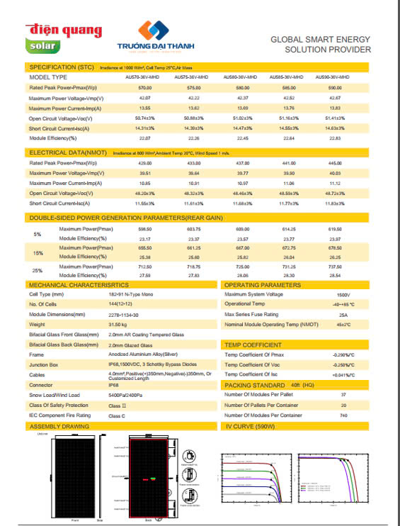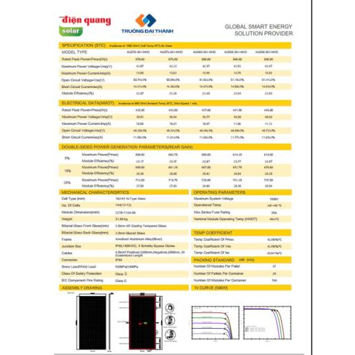 🌞 Tấm pin năng lượng mặt trời Điện Quang AUSTA N-Type 590Wp